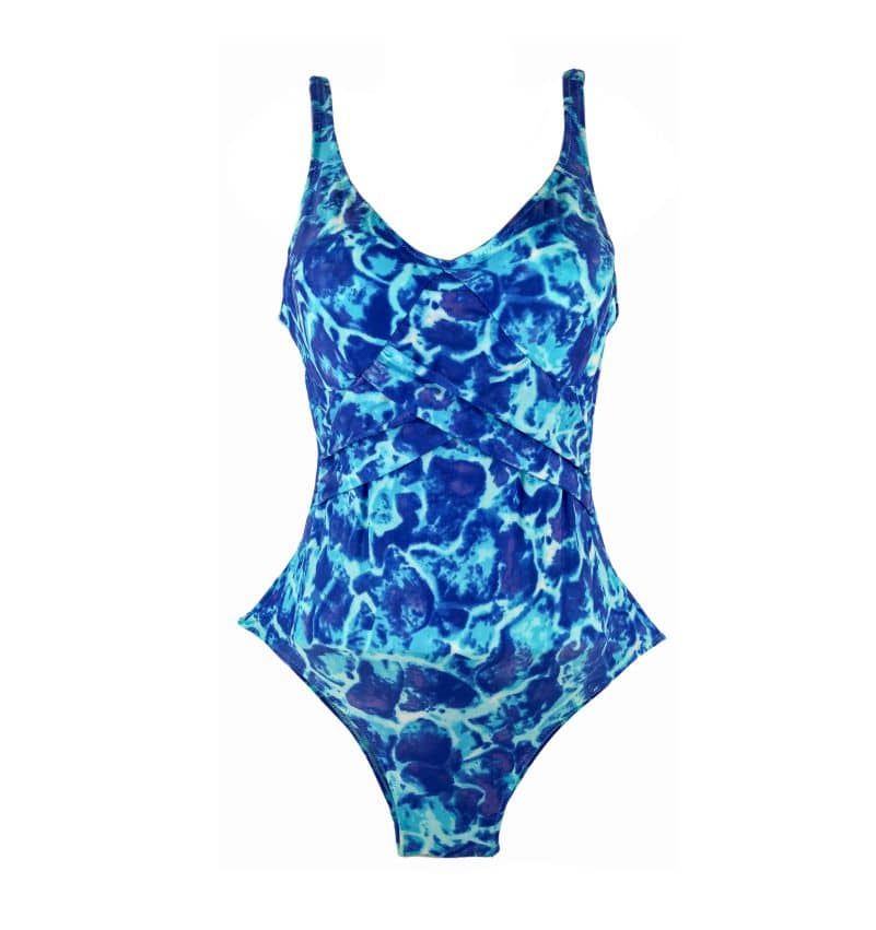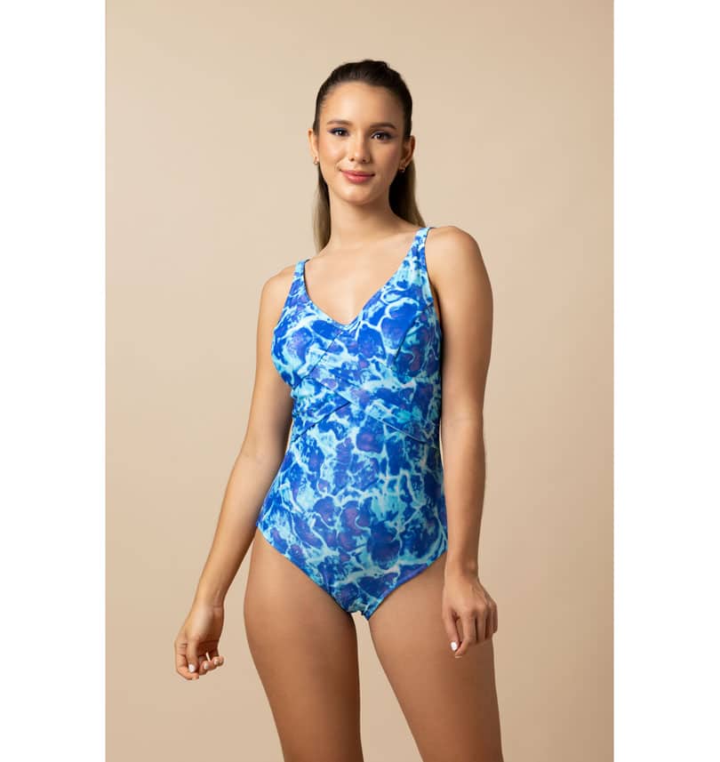 It gives you a nice cleavage and slims your figure with its crossed-ruffle style. Our Xtralife Lycra helps support and shape your body, making it easier to adapt to any body size.