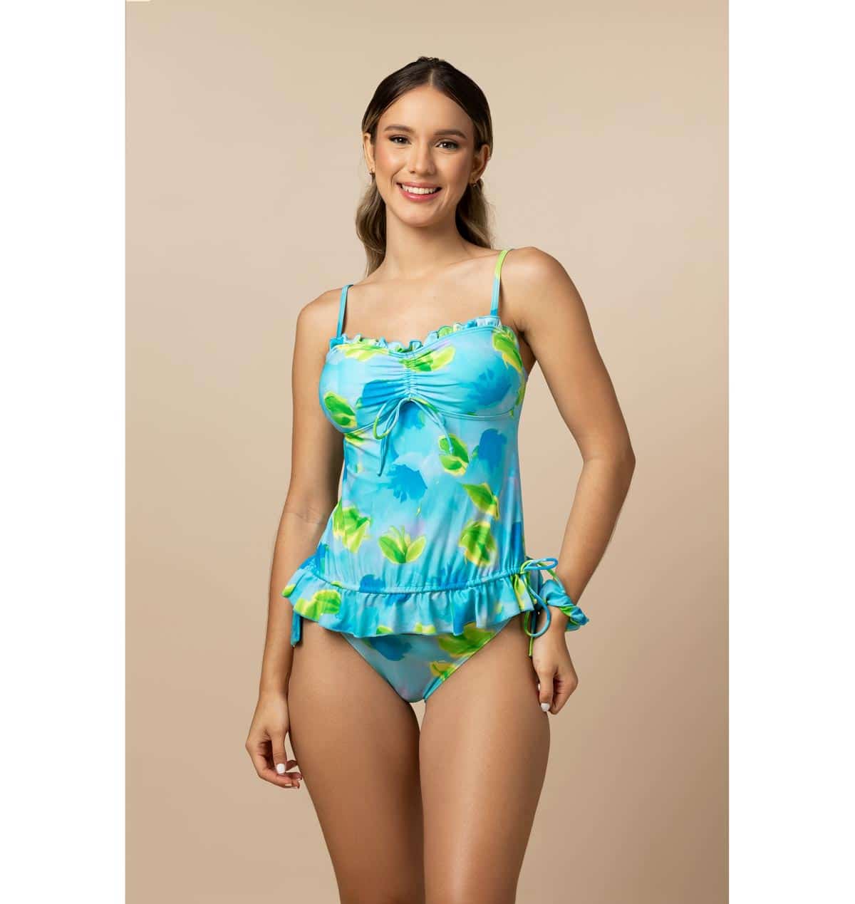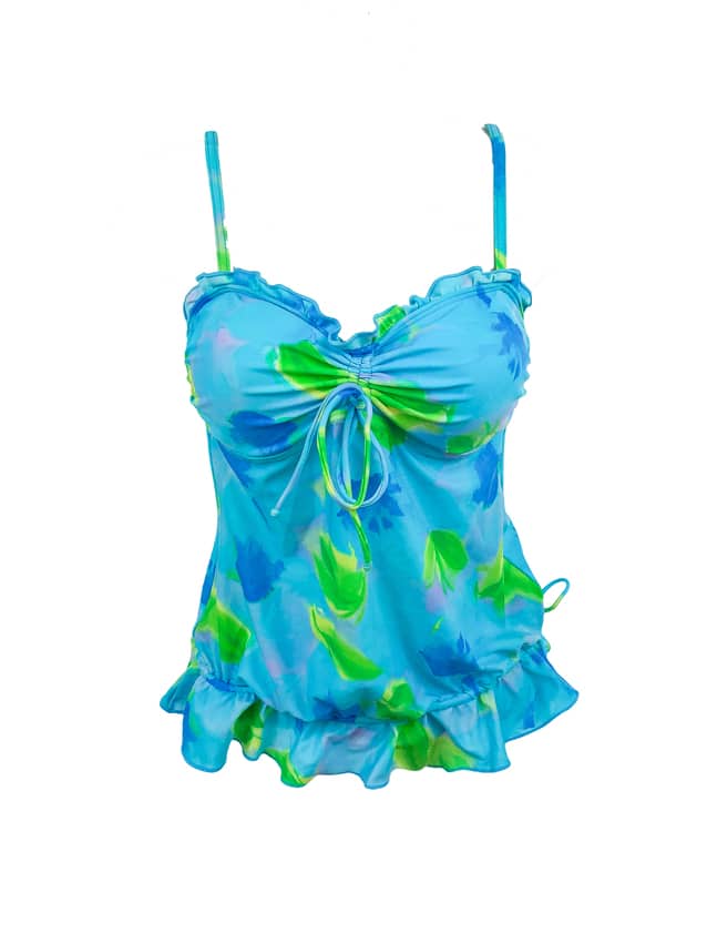 If you’re not feeling ready for a bikini and need more coverage, a tankini combines the comfort of a tank top and the freedom of a bikini bottom all in one swimsuit.