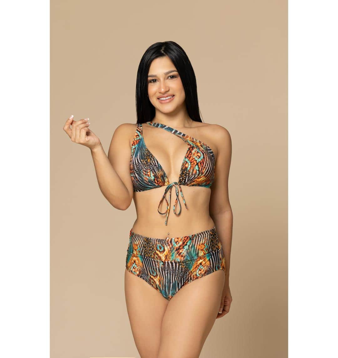 Beautiful high waist elastic bikini bottom, cool touch with fully covered buttocks and side extended to the lower hip.