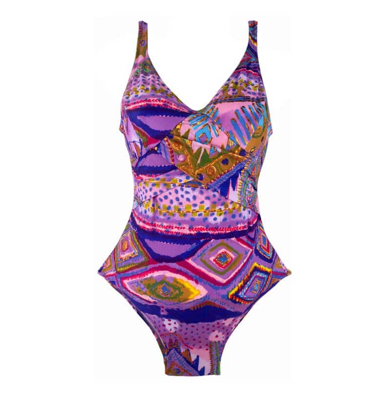 It gives you a nice cleavage and slims your figure with its crossed-ruffle style. Our Xtralife Lycra helps support and shape your body, making it easier to adapt to any body size.