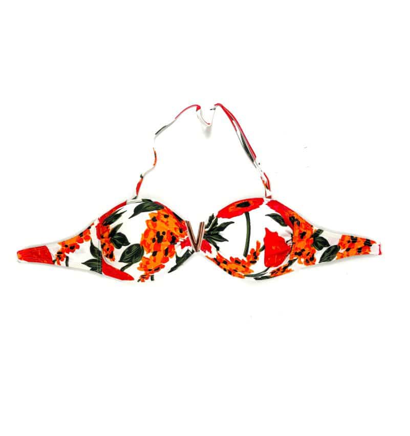 This swimsuit has removable pads for guaranteed comfort. It comes with a thin strap that can be adjusted, lifting the top front of the Bandeau for a super comfortable fit.